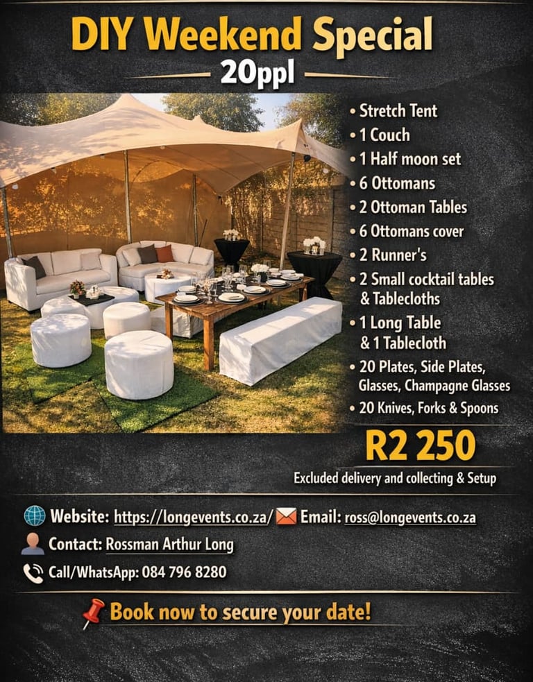 At RAL Events Management, we specialise in transforming ordinary spaces into extraordinary experiences. With years of expertise in event hire, décor, and full event coordination, we support clients across Johannesburg and Gauteng with exceptional service and premium-quality equipment.