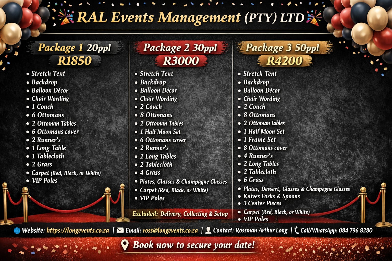 Ral Events Management made our engagement party unforgettable with their flawless setup and elegant décor that wowed everyone.